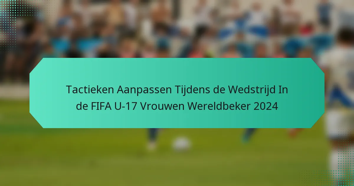 In de FIFA U-17 Vrouwen Wereldbeker 2024 tonen teams hun vermogen om tactieken tijdens de wedstrijd aan te passen, door strategische aanpassingen aan formaties en spelerswissels toe te passen. Coaches maken gebruik van realtime data-analyse en effectieve communicatie om te reageren op de veranderende dynamiek van het spel, waardoor ze de zwaktes van tegenstanders kunnen benutten en hun eigen verdedigingsstrategieën kunnen verbeteren. Deze aanpasbaarheid is cruciaal gebleken voor het verbeteren van de prestaties en het behalen van gunstige resultaten in wedstrijden met hoge inzet.