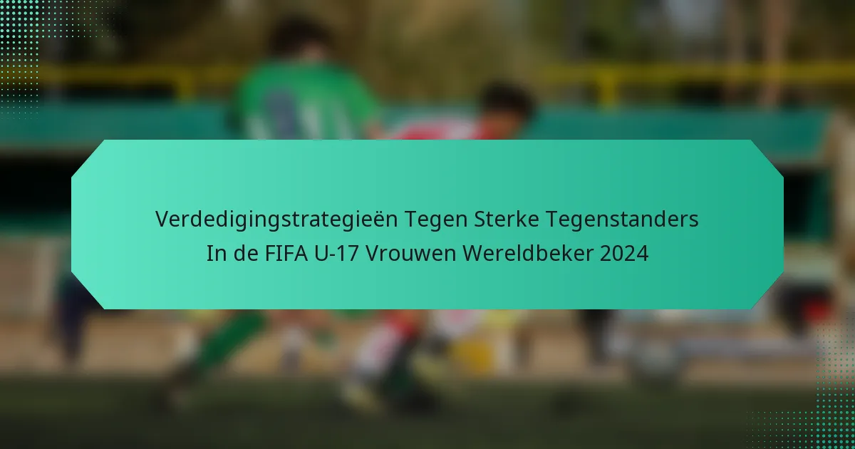 In de FIFA U-17 Vrouwen Wereldbeker 2024 zijn effectieve verdedigingsstrategieën cruciaal voor teams die het opnemen tegen sterke tegenstanders. Door zich te concentreren op formatie, spelerspositionering en communicatie, kunnen teams hun tactieken aanpassen om de sterke punten van rivalen te neutraliseren, terwijl ze druktechnieken gebruiken om de bal terug te veroveren. De keuze van formatie speelt een essentiële rol in het verbeteren van de verdedigingscapaciteiten van een team, zodat ze structuur behouden en effectief kunnen reageren op aanvallende dreigingen.