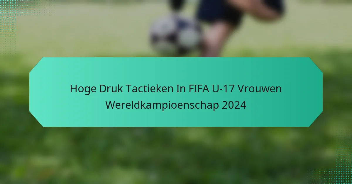 Hoog druk zetten is een kenmerkende tactiek geworden van de FIFA U-17 Wereldbeker voor Vrouwen 2024, waarbij teams agressieve strategieën toepassen om snel de bal terug te veroveren na verlies van balbezit. Deze aanpak verstoort niet alleen het opbouwspel van de tegenstanders, maar creëert ook scoringskansen door snelle overgangen en effectieve samenwerking. Opmerkelijke teams zoals de Verenigde Staten, Duitsland en Brazilië hebben hun bekwaamheid in hoog druk zetten getoond, wat hun prestaties gedurende het toernooi aanzienlijk heeft verbeterd.
