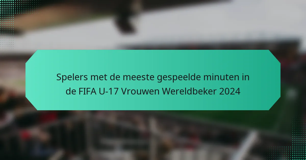 Speelminuten in de FIFA U-17 Vrouwen Wereldbeker zijn cruciaal omdat ze direct invloed hebben op de prestaties van spelers en de dynamiek van het team. Hogere speeltijd correleert vaak met een verhoogde spelersontwikkeling en kan de uitkomsten van wedstrijden aanzienlijk beïnvloeden.